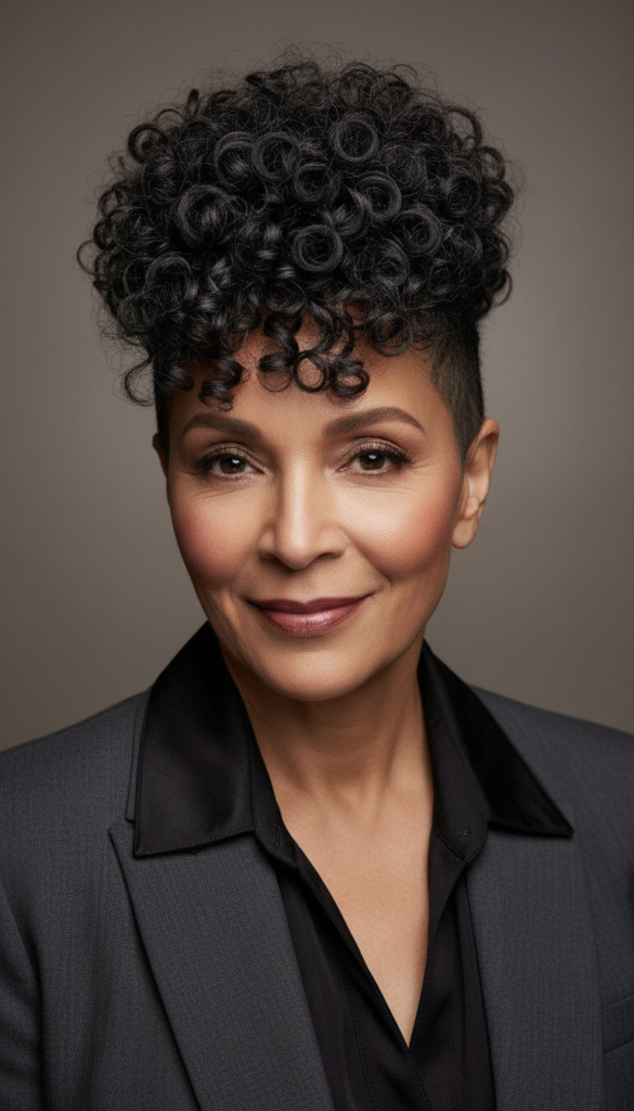 Let your natural texture shine through like Oprah Winfrey. The best way to ensure each coil is defined? Apply a gel for curly hair when strands are still wet. This style embraces natural curl patterns while creating a soft, flattering frame around the face.
