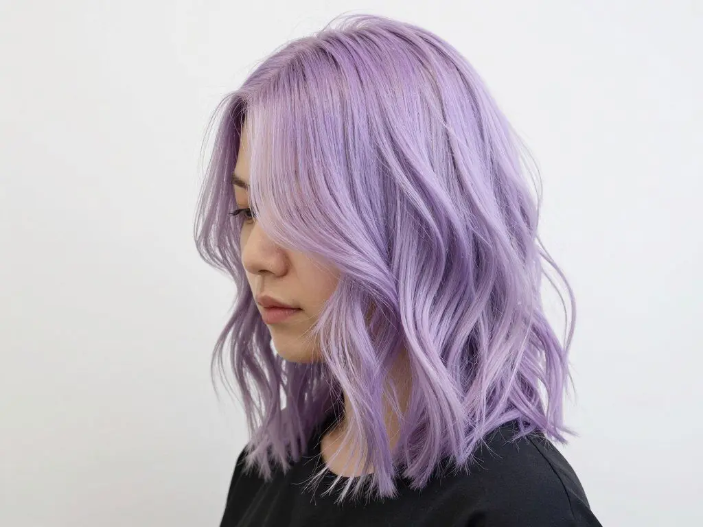 To maintain pastel lavender, use purple-depositing conditioners and wash with cool water only when necessary. This color typically requires touch-ups every 3-4 weeks as pastels fade quickly, or you can let it fade to a softer, more muted tone.