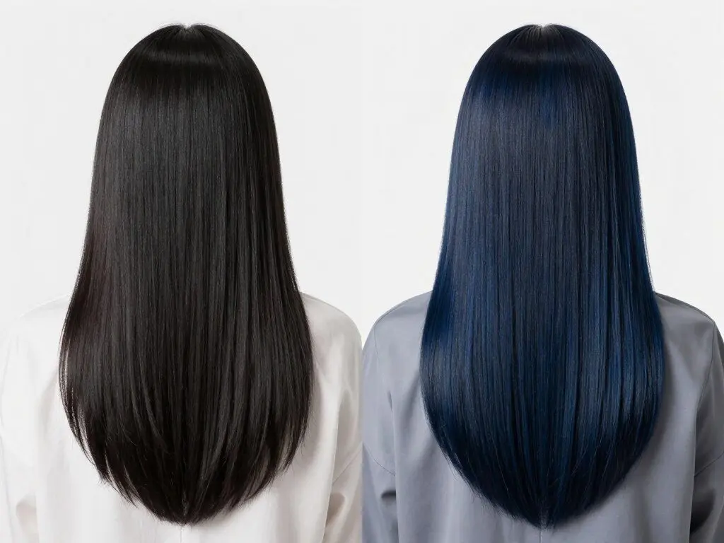 To maintain blue-black, use color-safe products and consider a blue-tinted conditioner to enhance the undertones. This color typically requires touch-ups every 6-8 weeks to maintain its rich, dimensional appearance.