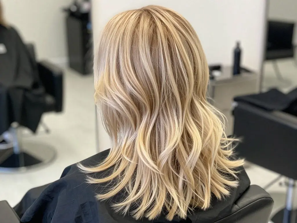 To maintain this golden shade, use color-depositing conditioners and avoid clarifying shampoos that can strip the warmth. This color tends to fade gracefully, making it relatively low-maintenance compared to other blonde shades.