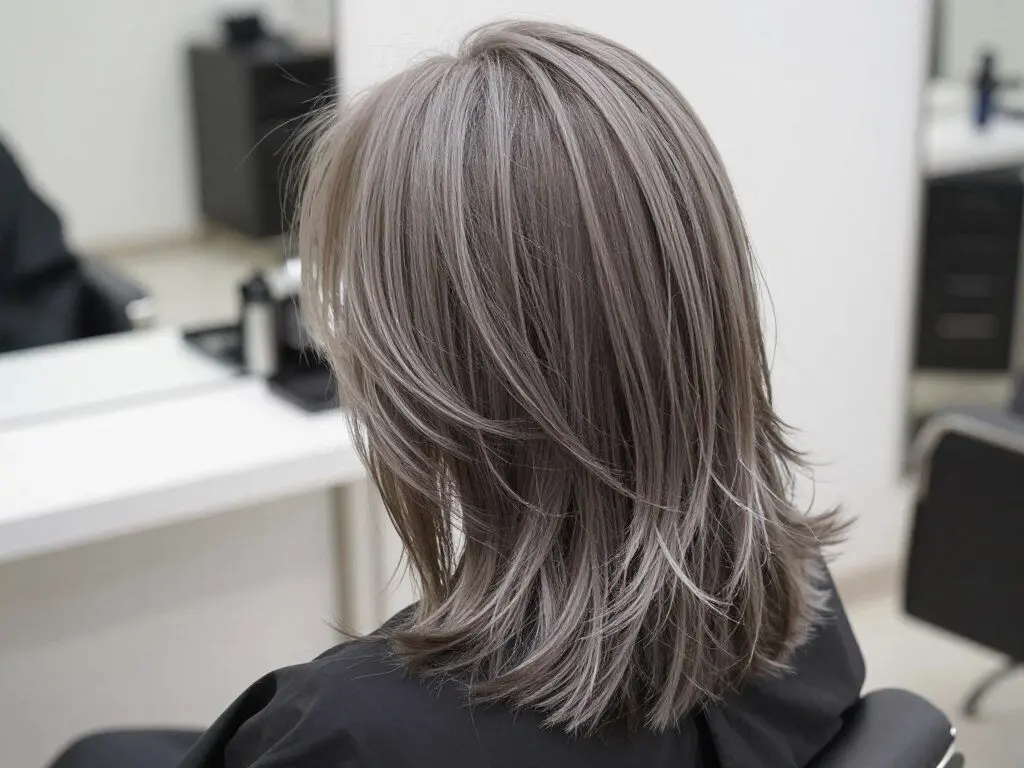 This metallic, cool-toned gray creates a modern, fashion-forward look. Silver gray requires pre-lightened hair to achieve its distinctive tone and works beautifully on those with cool skin tones. This trendy shade offers a way to embrace gray intentionally rather than trying to cover it.